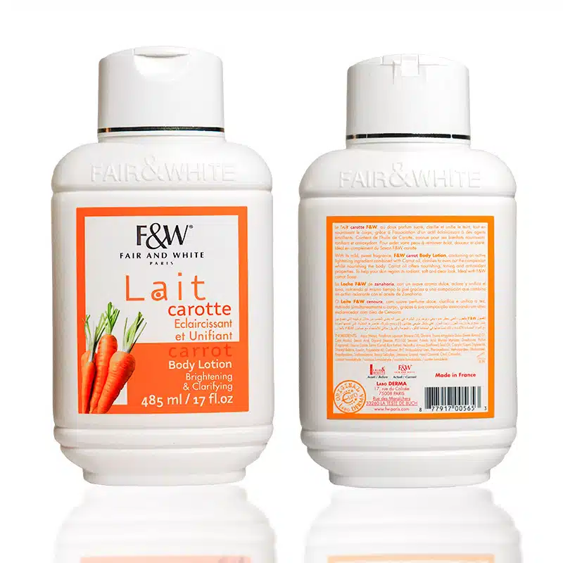 FAIR & WHITE CARROT BODY LOTION is a high quality lotion formulated to support healthy, balanced skin while improving overall skin appearance. It helps hydrate, nourish, and protect the skin as part of a consistent daily skincare routine.