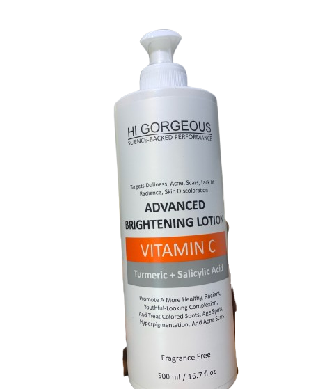 HI GORGEOUS ADVANCED BRIGHTENING LOTION (VITAMIN C + TURMERIC) is a high quality lotion formulated to support healthy, balanced skin while improving overall skin appearance. It helps hydrate, nourish, and protect the skin as part of a consistent daily skincare routine.