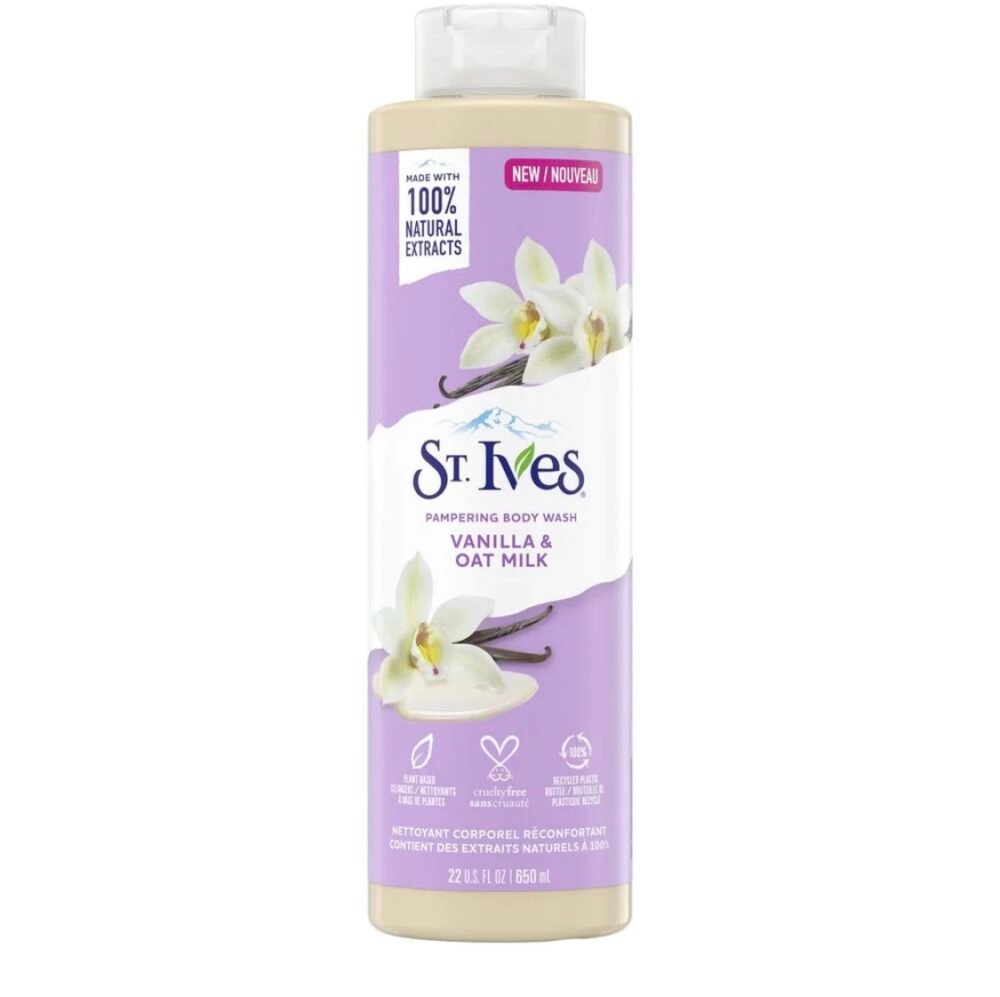 ST. IVES OAT MILK & VANILLA BODY WASH is a high quality cleanser formulated to support healthy, balanced skin while improving overall skin appearance. It helps hydrate, nourish, and protect the skin as part of a consistent daily skincare routine.